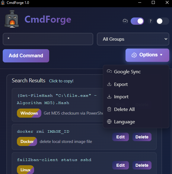 I finished creating and testing my desktop app for MacOS and Windows “CmdForge”